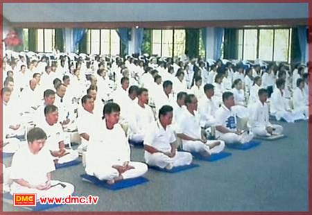 เดินเข้าสู่ห้องปฏิบัติธรรมอันเงียบสงบ ฝ่ายจัดสถานที่จัดให้นั่งเก้าอี้ด้านหลัง ติดป้ายว่า 5ช เพื่อให้ห้อยขาและเปลี่ยนอิริยาบถได้ง่ายยามเมื่อยขบ เพราะเจ้าหน้าที่เห็นว่าเป็นคนใหม่ และสังขารค่อนข้างย่างเข้าสู่วัยสูงอายุ 09.15 น. ผู้มีบุญกลุ่มแรกเริ่มเดินเข้าห้องปฏิบัติธรรม ผมเห็นตรงกลางห้องว่างอยู่จึงนั่งลง มองตรงไปข้างหน้า รูปหลวงปู่บานใหญ่ตั้งอยู่กลางห้อง เหมือนท่านกำลังจ้องมองมาที่ผม จึงอธิษฐานจิตขอฝากชีวิตไว้ใต้ร่มบารมีของหลวงปู่ตลอดไป และเริ่มนั่งสมาธิเป็นครั้งแรก